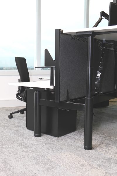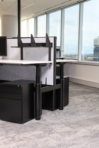 The benefits of sit-to-stand workstations are well documented, and Maxton Fox’s Australian designed and manufactured Leader Workstations in a 120º frame option were considered the best fit for purpose for the iCare fit-out. Maxton Fox powder-coated the workstations in-house from its powder-coating line prior to installation.