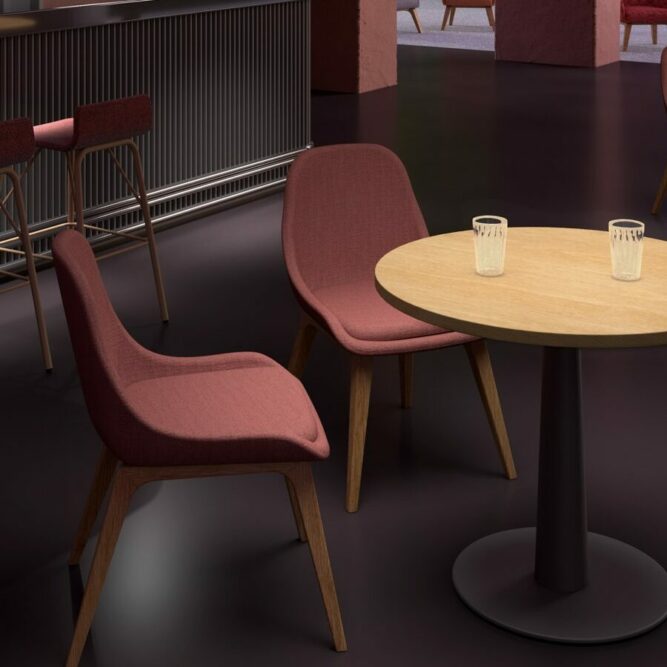 It pairs seamlessly with the New Life’s MULTILEGS system bases, offering a choice of four solid beech or six metal bases, available in fixed or swivel configurations. The fixed bases, both in wood and metal, can be finished in a variety of colors from the exclusive New Life palette to suit any