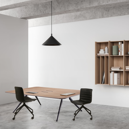 EONA is a modular table system manufactured from post-consumer recycled materials, offering a sleek and timeless design for conference rooms and boardrooms.