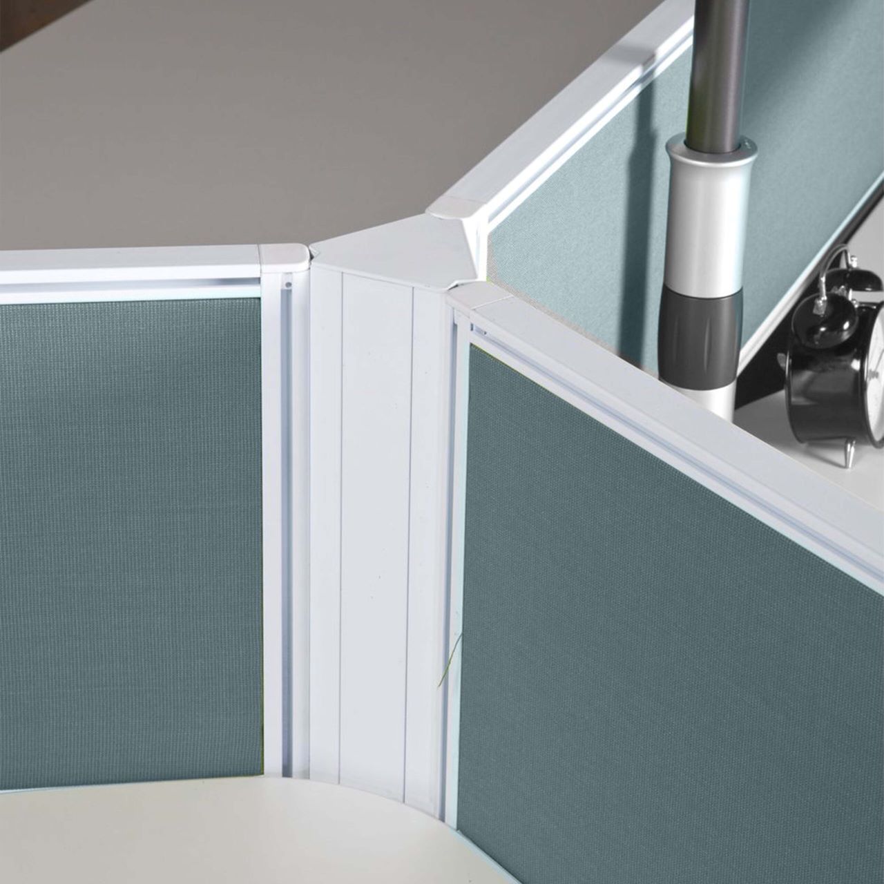 Kontakt offers power below desk or in a vertical power rail located in the centre of the system.