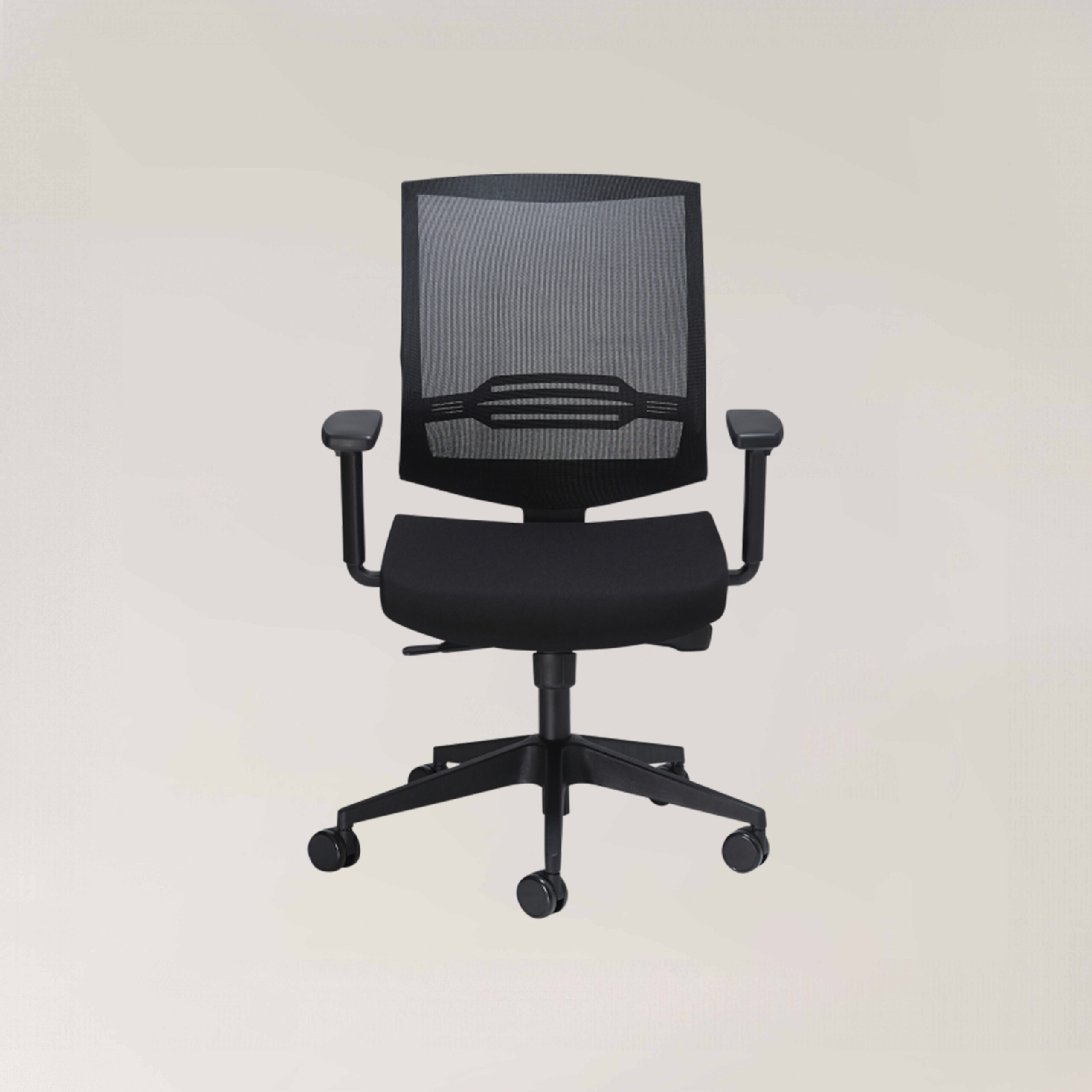 The Link Task Chair features a contoured square back with clean edges, upholstered in a stylish and breathable mesh fabric.
