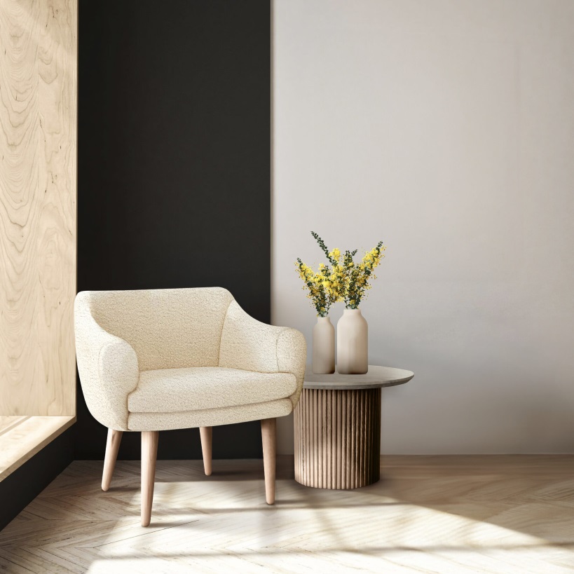 The Molly Chair can be upholstered in a wide selection of premium fabrics, allowing for one or two-tone detailing.