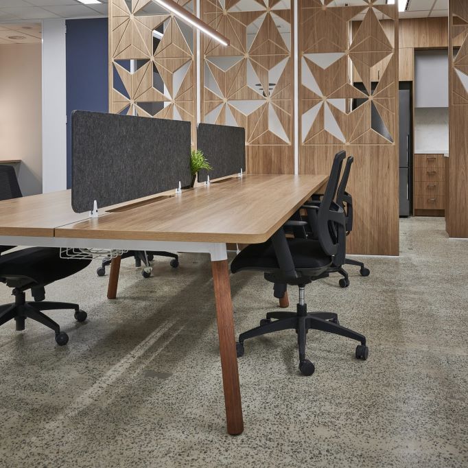Made using E0 Global Green Tag certified board, with Linseed Oil and Sawdust surface, combined with radiata pine timber legs and Australian steel frame fabricated, and powder-coated onsite at our Maxton Fox manufacturing facility. Not to mention, steel clips to support the PET sustainable eco-panel screen for semi-privacy.