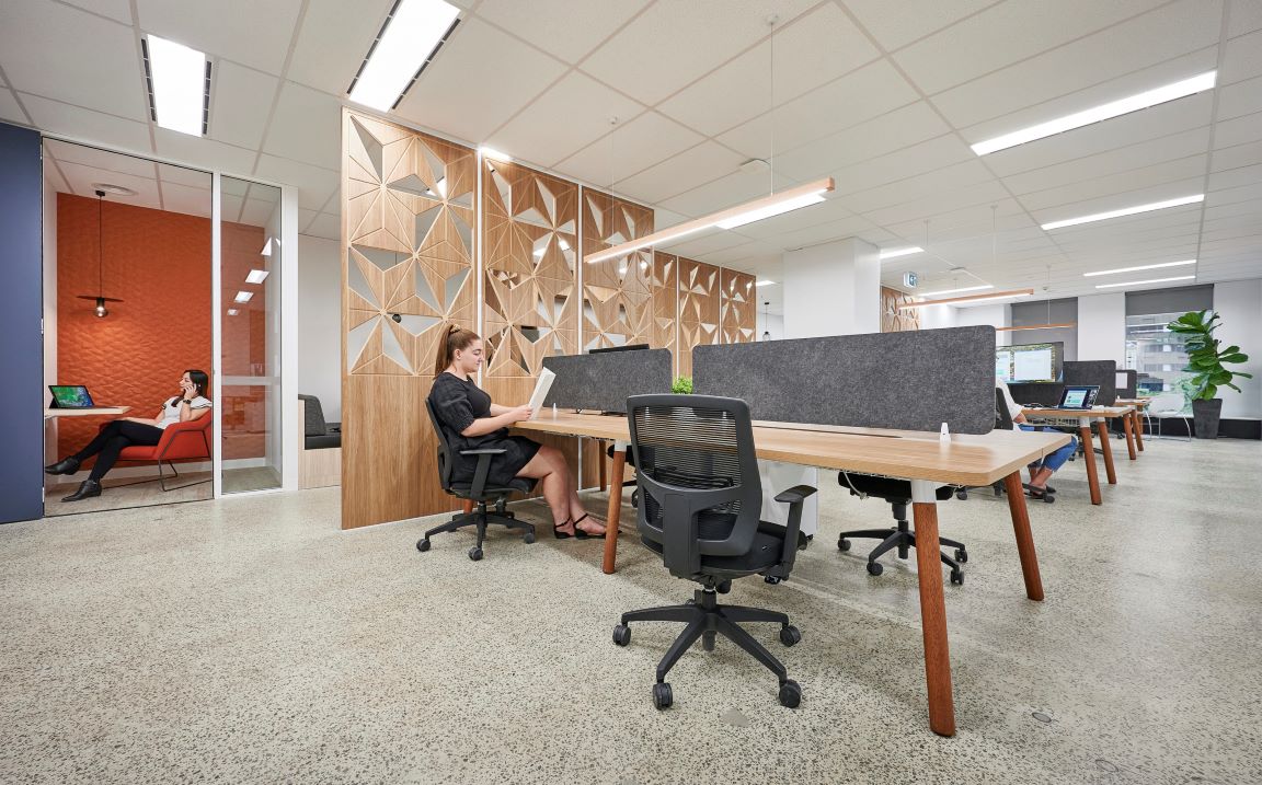 Maxton Fox’s new Tasman workstation range is featured in this project and certainly brings that element of warmth to the floors with the natural timber design.
