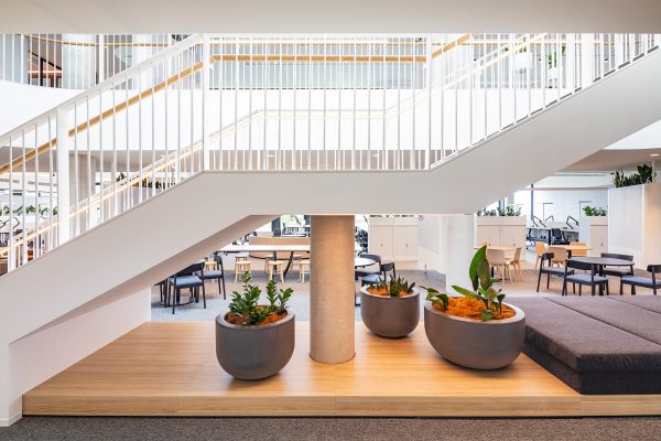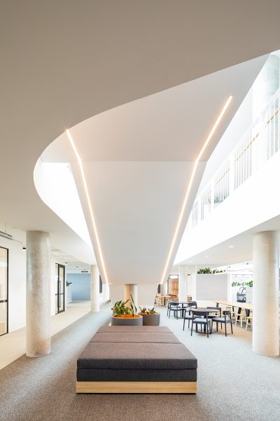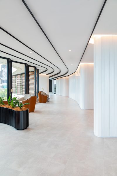 boomerang shaped design, architecturally created by Bates Smart Architects to achieve optimum solar orientation.